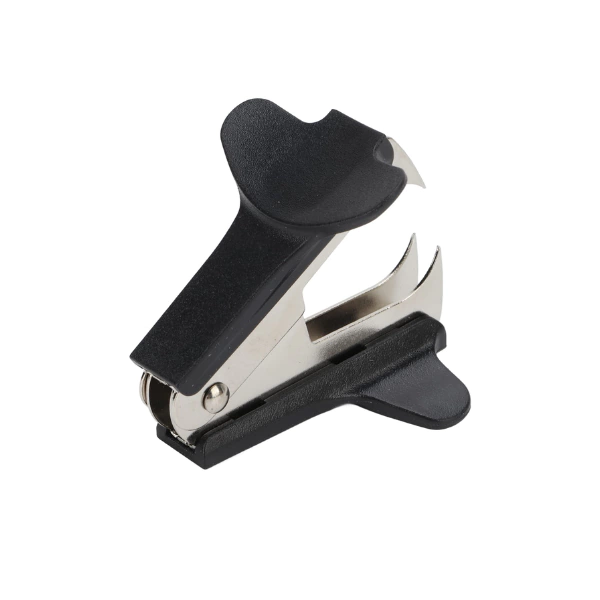 Extrator de grampos , modelo piranha, em metal revestido com plástico.